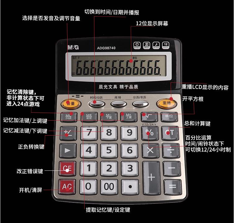 晨光計算器帶語音辦公用會計專用商務計算機辦公室大號大按鍵大屏幕女真人發(fā)音財務學生用小號便攜電子記算器